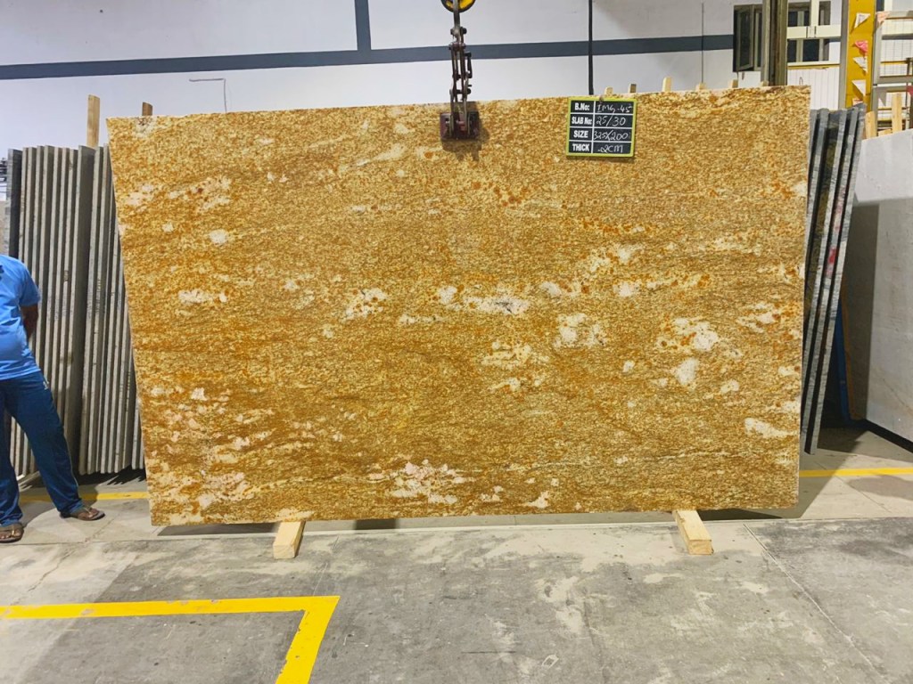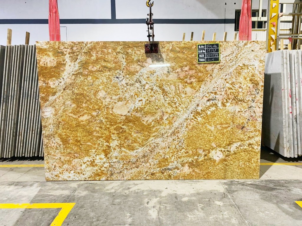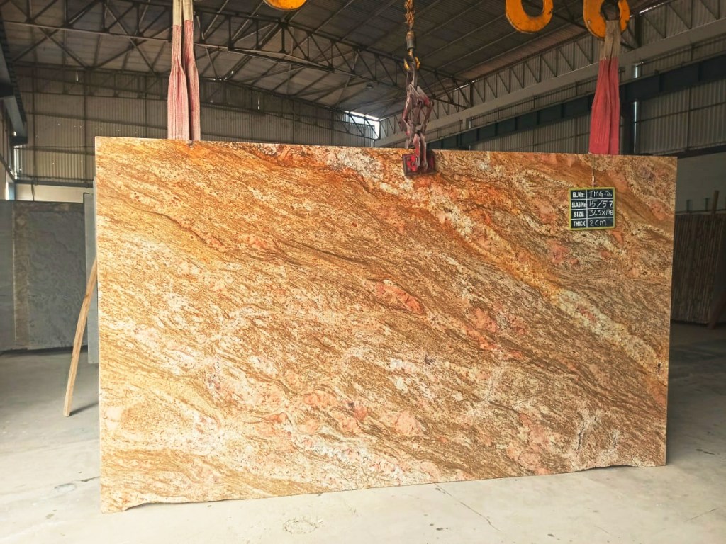 For the sake of catering to many of our buyers’ demands, we also offer processed slabs of Imperial Gold in Gangsaw and Cutter sizes starting from 20mm thickness with MOQ (Minimum Order Quantity) of 1 FCL.