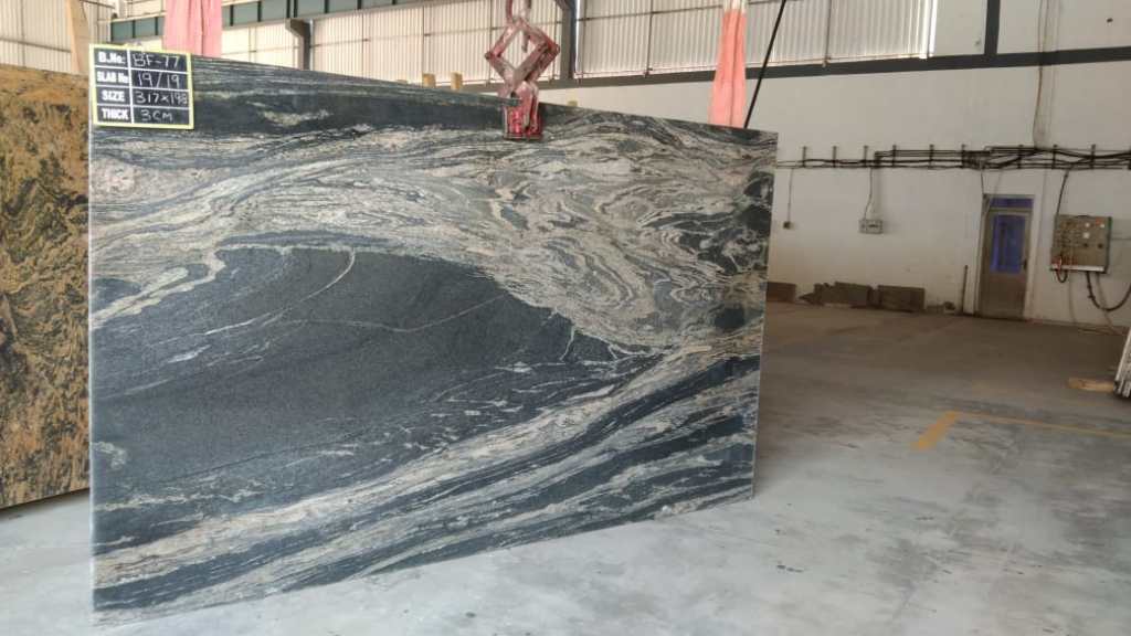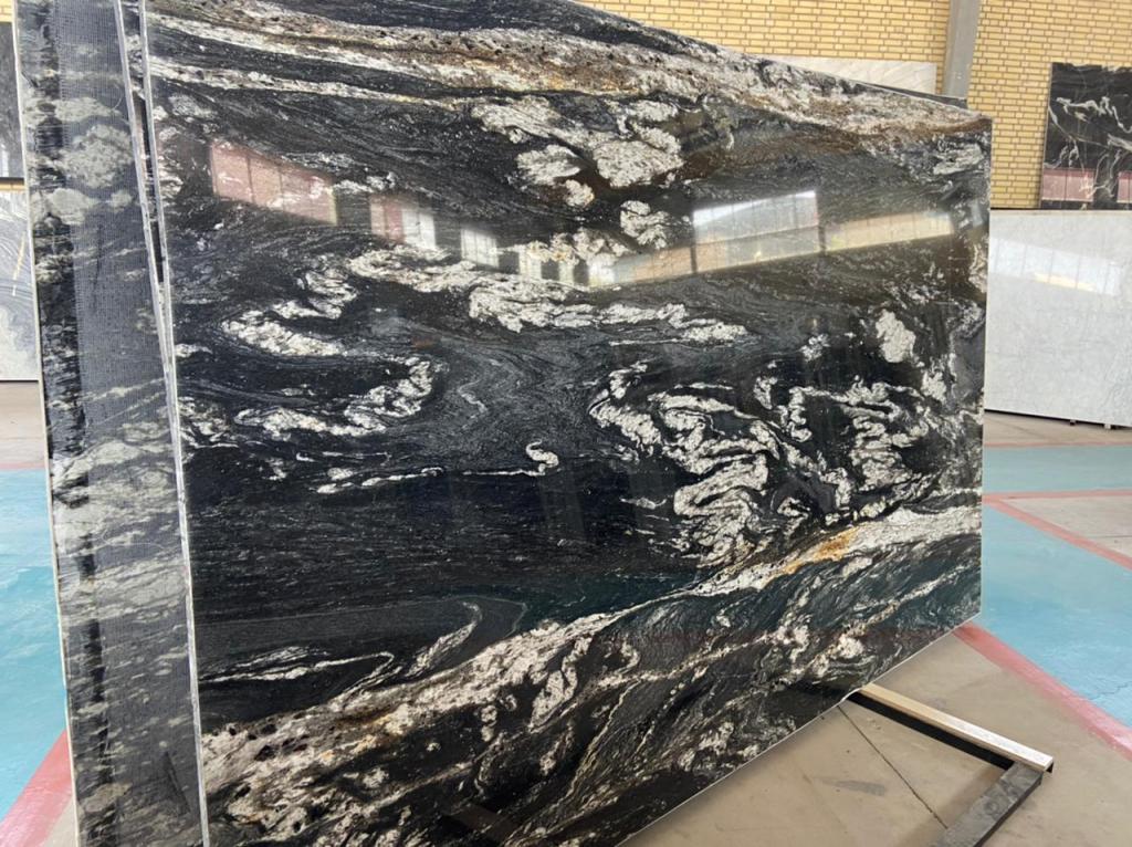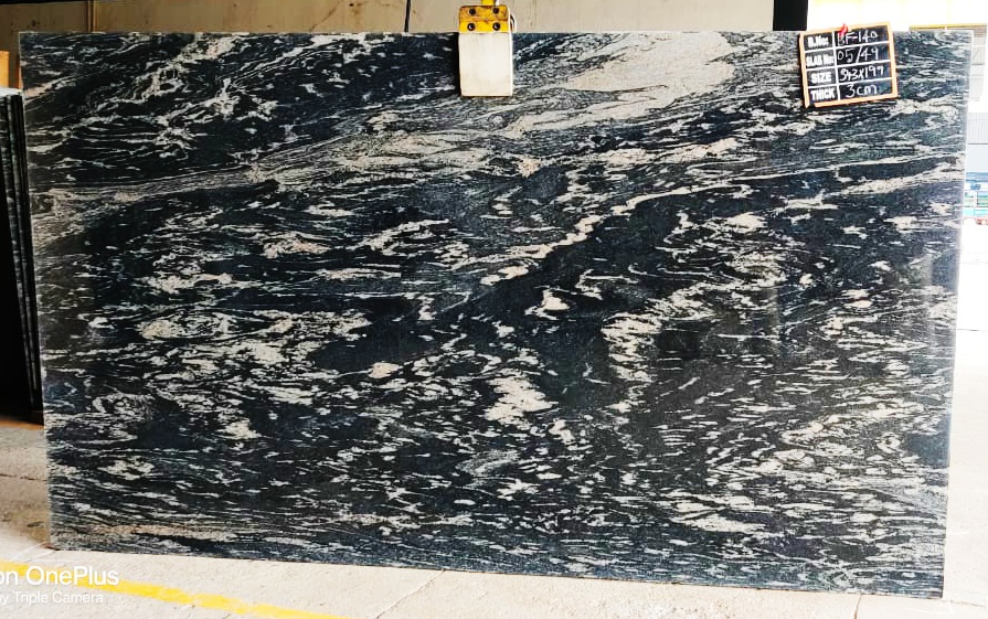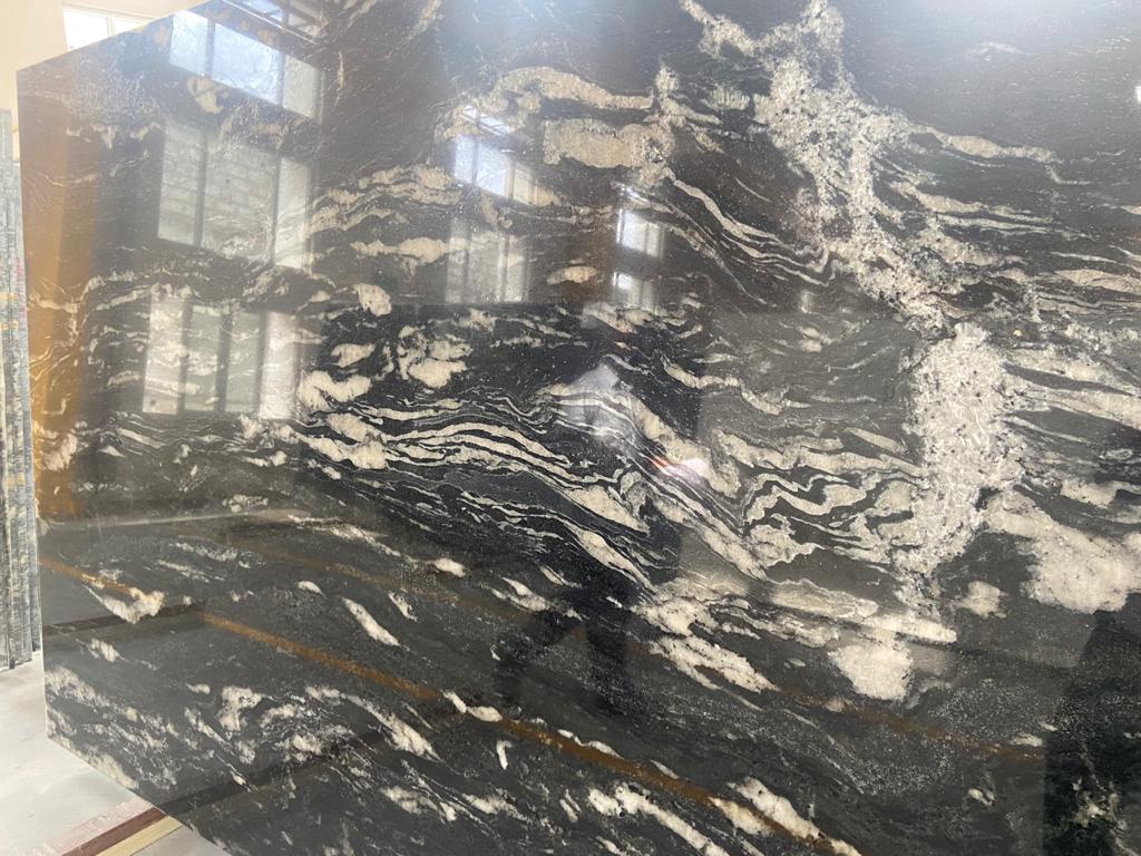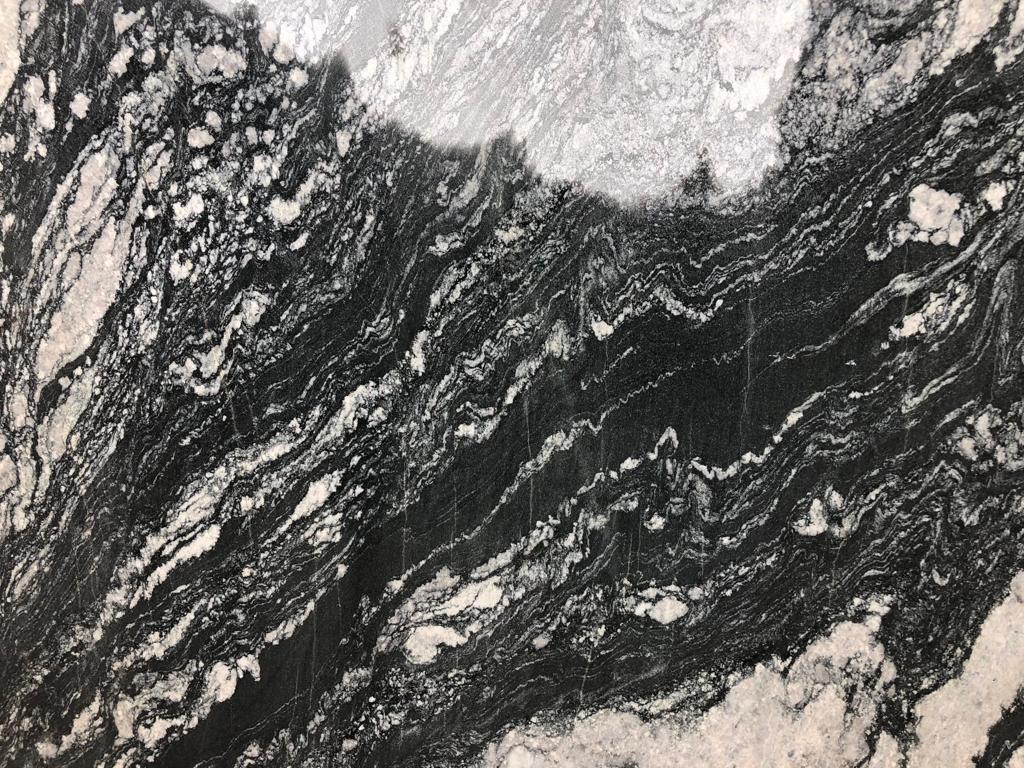 Our signature Magma Black is a Gneissic pattern with Blue, Black and Ivory hues in a mesmerising Natural Gneiss pattern.